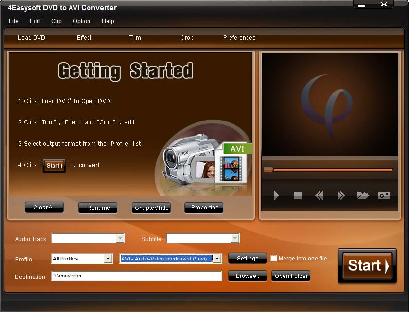 DVD to AVI Converter is super all-in-one DVD to AVI software,which could rip DVD to AVI, DVD to HD AVI, DVD to DivX HD (.avi), DVD to XviD HD (.avi) video. It converts DVD to AVI format to support many PMPs: Archos MP4, iRiver, Creative Zen, etc.